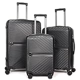 OMBRY Luggage Set 3 Pieces -Suitcase Set - Carry on Luggage with Wheels - Check-in Luggage - PC + ABS Durable Suitcase Rotating Silent Wheels (3-Piece Set (20/24/28) (3, Black)